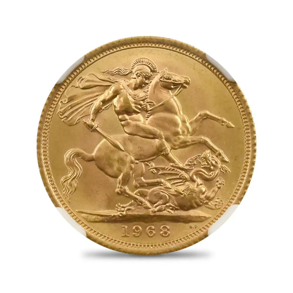 イギリス 1968 エリザベス2世 ヤングヤング 聖ジョージ竜退治 ソブリン金貨 NGC MS66