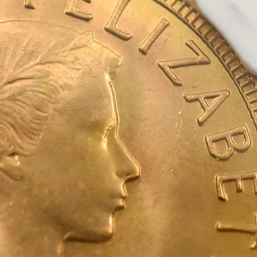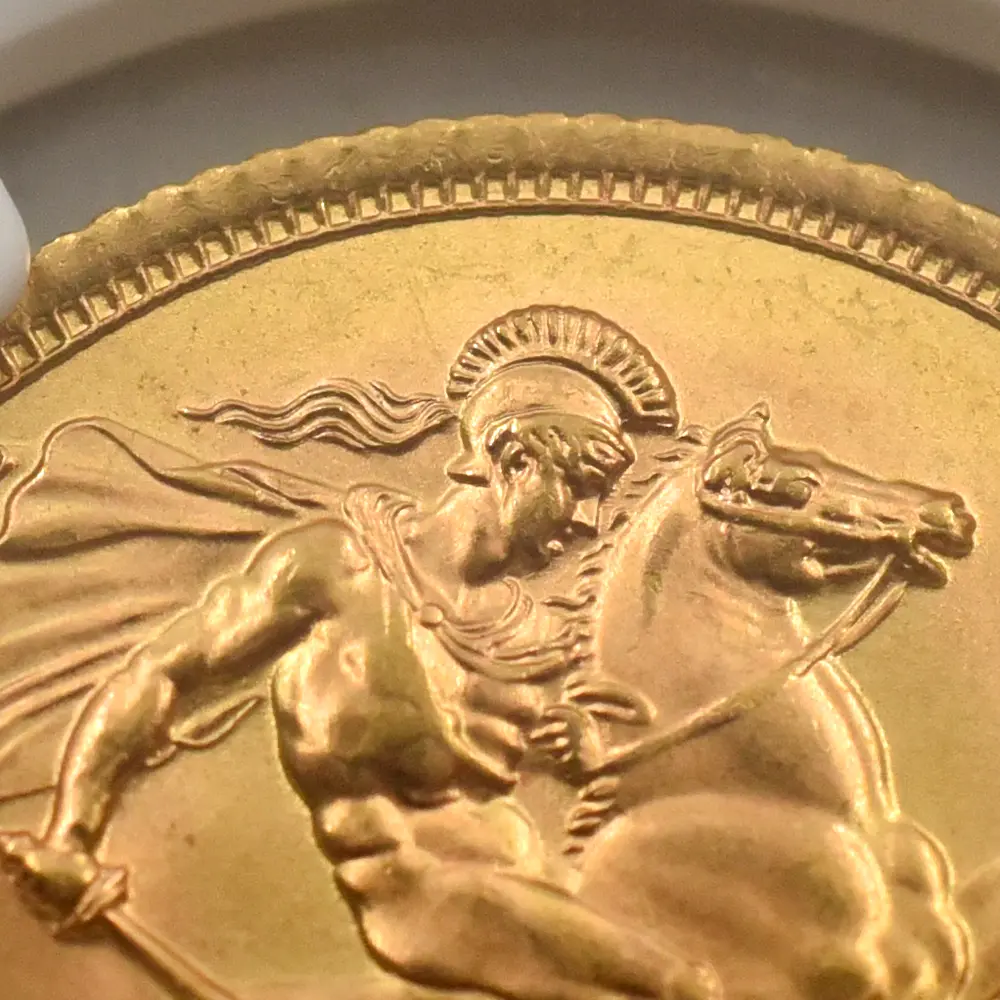 今回ご紹介させていただく作品の表面には、エリザベス2世の治世の幕開けを象徴する「ヤングヤング・エリザベス」が刻まれています。1950年代のロイヤルミントを牽引した女流コインデザイナー、メアリー・ギリックの独創性が光るこの作品は、20世紀の英国貨幣界を代表する屈指の大作として知られています。今回ご紹介させていただくコインの表面には、意気揚々たる趣きを湛えた若干25歳の女王の横顔が描写されており、若年にして英国を率いることになった女王の気概を感じ取ることができます。そしてコイン裏面に見られる「聖ジョージの竜退治」のデザインですが、19世紀初頭の英国貨幣界に君臨したイタリア人名彫刻家、ベネデット・ピストゥルッチ(1783年-1855年)入魂の力作として今日まで受け継がれてきた重要な作品です。馬上から悪の象徴であるドラゴンを退治する聖人の風格は、あらゆる苦難を乗り越えて国家を統治する君主の姿になぞらえることが可能かと思われます。エリザベス2世の治世と共に発行を開始したモダンコインの世界ですが、意外なことに女王の治世初期のコインに関しては各種カタログには掲載されているものの、近年のオークションを始めとする市場においては目にする機会自体がめっきり減ってしまったものも多く存在します。中でも1950年代に発行されたモダンコインの数々は、その稀少性において群を抜いています。当コインは1958年の作品ですが、モダンコインといえどもヴィンテージの風合いを醸し出す貴重な一枚でもあります。英国コインのファンが皆一様に憧れる「ヤングヤング・エリザベス」を掲げる当コインは、20世紀から21世紀にかけての英国に君臨した伝説の君主エリザベス2世の思い出に捧げられる、現代英国史の集約とも言える傑作です。