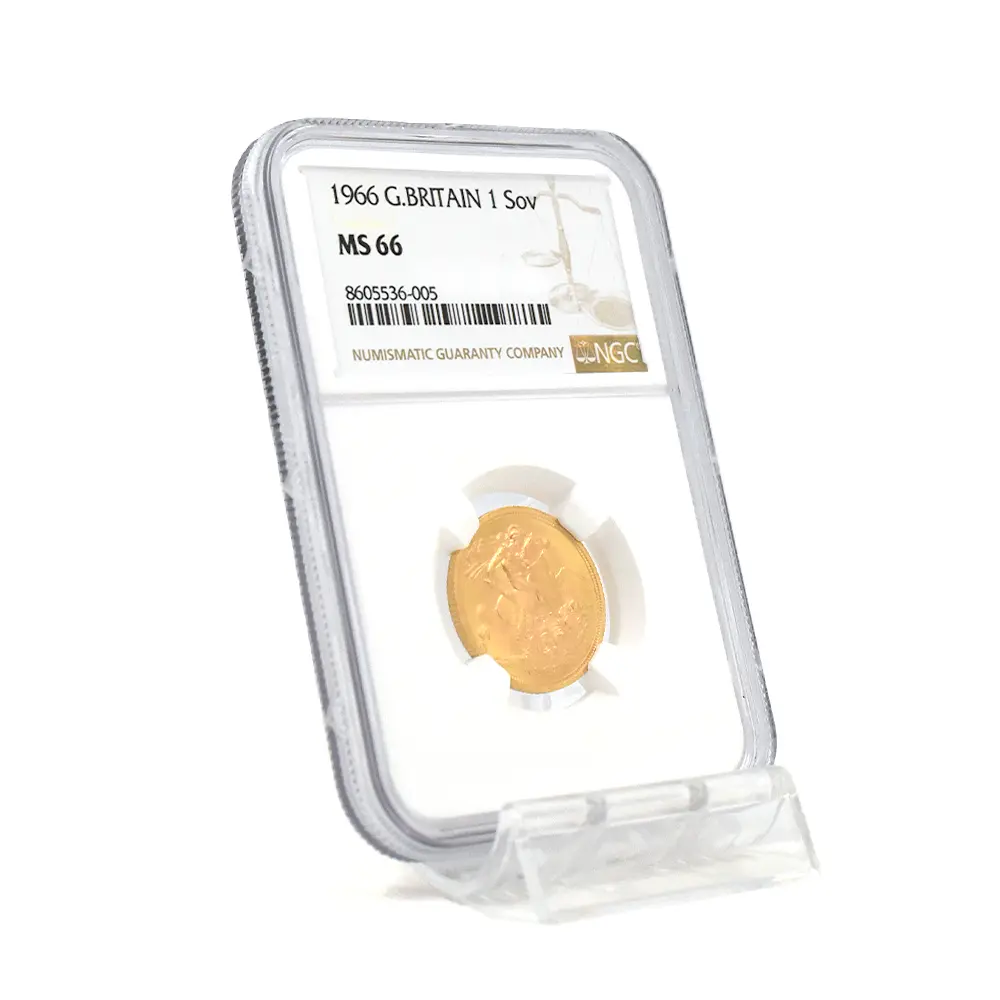イギリス 1966 エリザベス2世 ヤングヤング 聖ジョージ竜退治 ソブリン金貨 NGC MS66