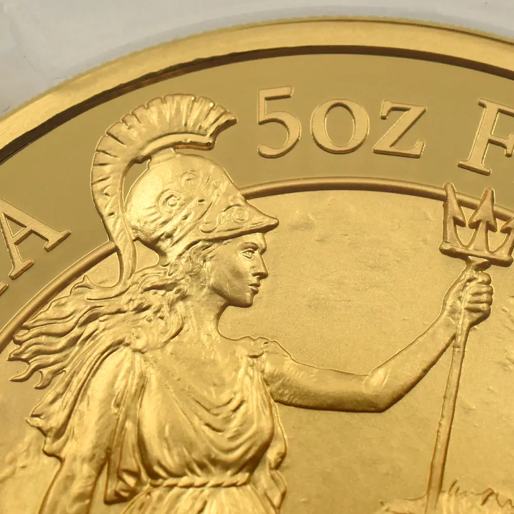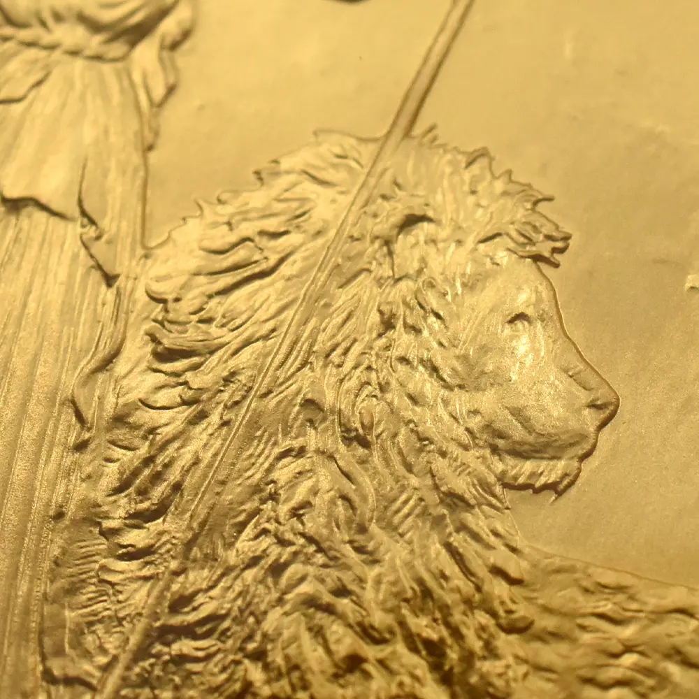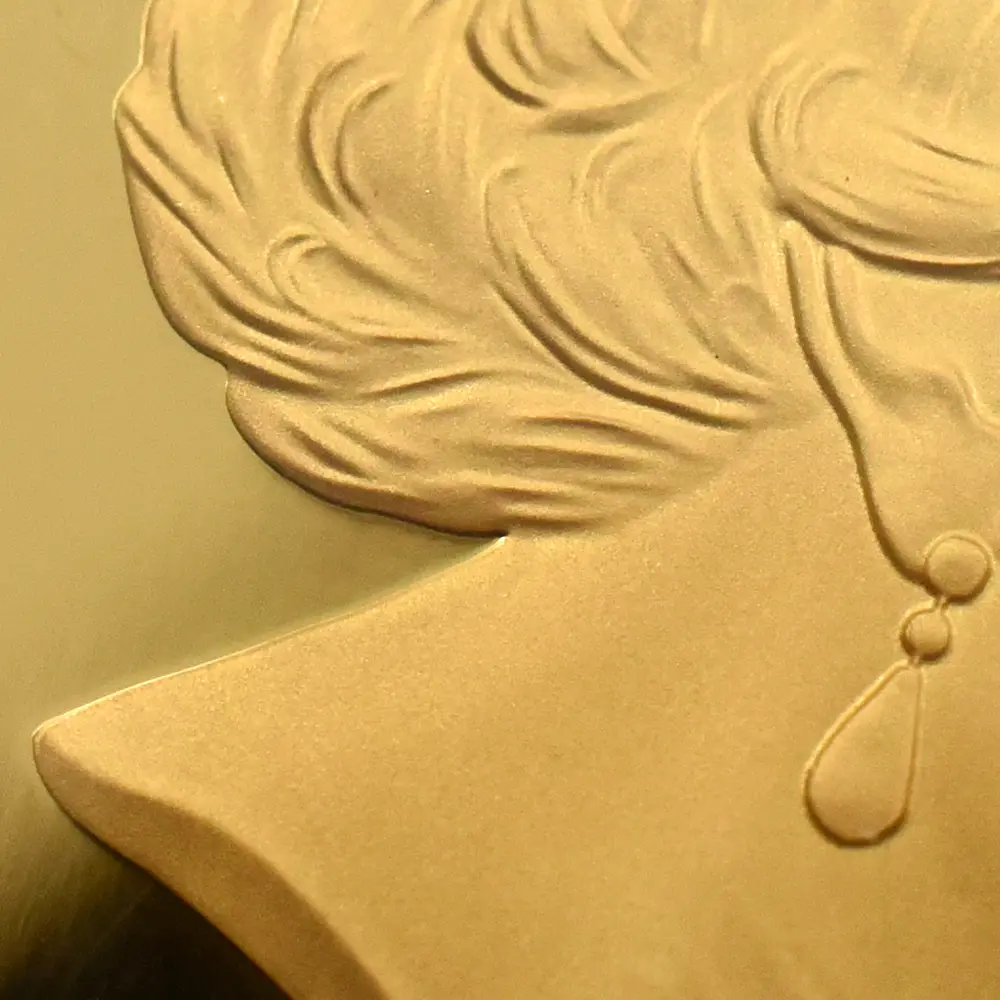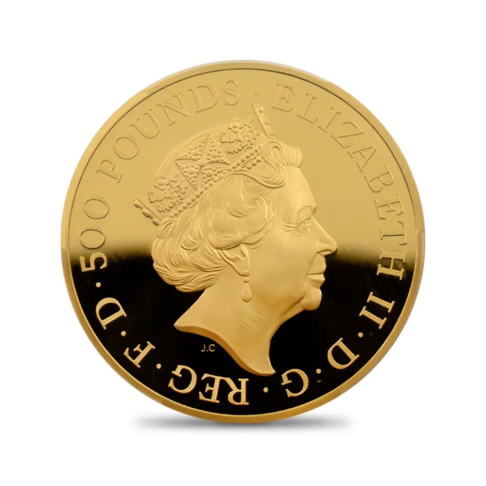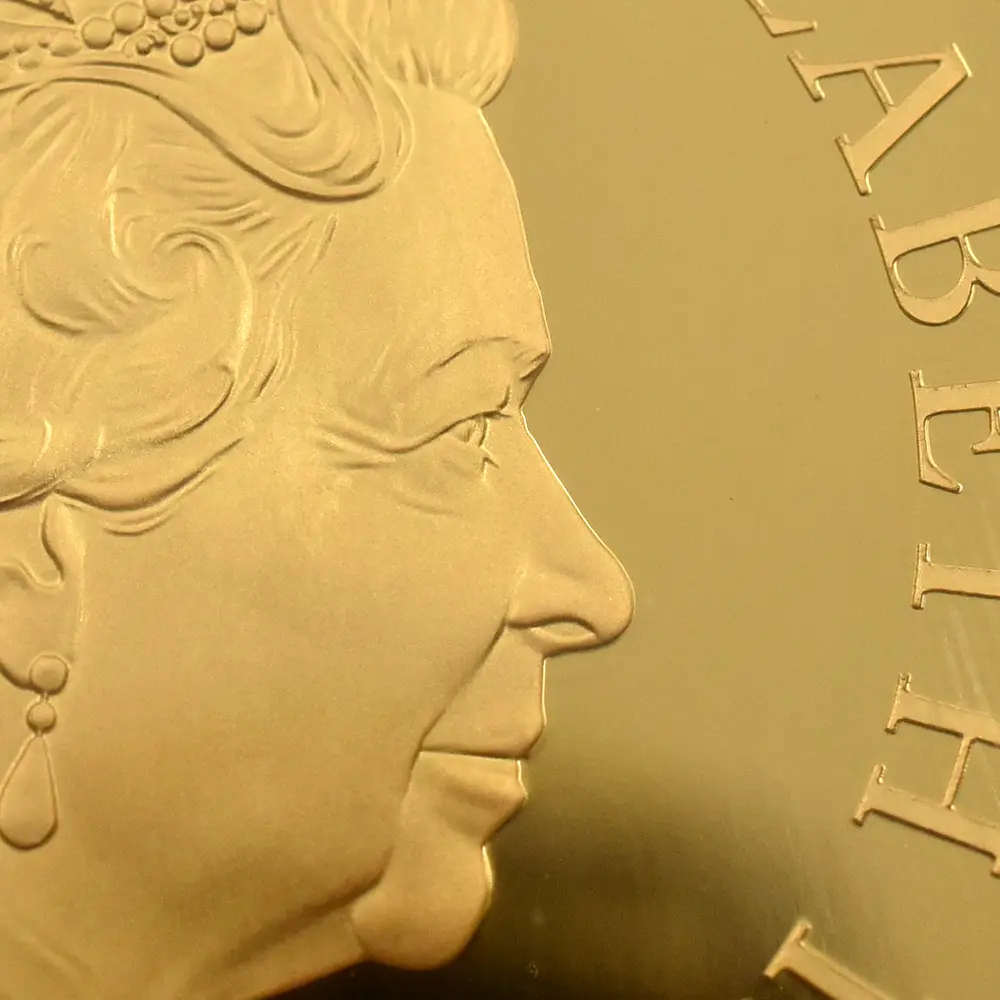 1980年代に英国ロイヤルミントが創始したコイン・シリーズの中でも一際国際的な注目を集め、長きにわたって世界中のコインファンから愛され続けている「ブリタニア・シリーズ」。その人気の秘密は毎年更新される斬新なデザインにあるようです。今回ご紹介させていただく作品は、オーソドックスながらも現代的な感性が光る21世紀ならではの意匠を特徴とするモダンコインの秀作です。裏面を見てみますと、まず最初にブリタニアを象徴する槍、盾、兜が目を引きますが、それらの小道具が女戦士の力量を強調しながらも、衣装のなだらかなドレープと風になびく長い頭髪が女神ならではの優美を絶妙に表現していることに気づかされます。そして傍らに控えるブリタニアの永遠の友であるライオンは、どこまでもブリタニアと同じ方向を見つめており、この作品の背景となっているドラマティックな物語を際立たせています。その友情はあたかもヴィクトリア期の銘貨「ウナとライオン」に描かれていた2者の関係を想起させるほどの説得力を持つものであり、加えてライオン像そのものの写実的な描写力は特筆に値する出来栄えを誇るものでもあります。毎年趣向を変えてコイン界に登場するブリタニア像ですが、この度のバージョンはまず何よりも原点への回帰を特徴としていることは明らかです。そして裏面全体に広がるこの美しい情景は、偉大なるエリザベス2世の治世にこそ捧げられるべき例外的な完成度の高さを誇ります。表面に描かれていますのは英国ロイヤルミントを代表する才能溢れる若手デザイナー、ジョディ―・クラークによるコイン肖像の大作「エリザベス2世の第5肖像」です。英国王室屈指の秘宝「ジョージ4世のステート・ダイアモンド・ダイアデム」を頭上に戴き、気品を湛えた女王の横顔は、70年間にわたって英国に君臨した偉大なる国王の生前の功績を後世に伝えるべき運命を感じさせるものです。裏面に英国を守護する女神ブリタニアを描く当コインは、女性の君主の時代に英国が繁栄するとの言い伝えが的を得ているということを十全に視覚化する、英国貨幣界にとってかけがえのない逸品に他なりません。コイン上におけるブリタニアの輝かしい勝利は、今後も数世紀にわたって継続されることでしょう。