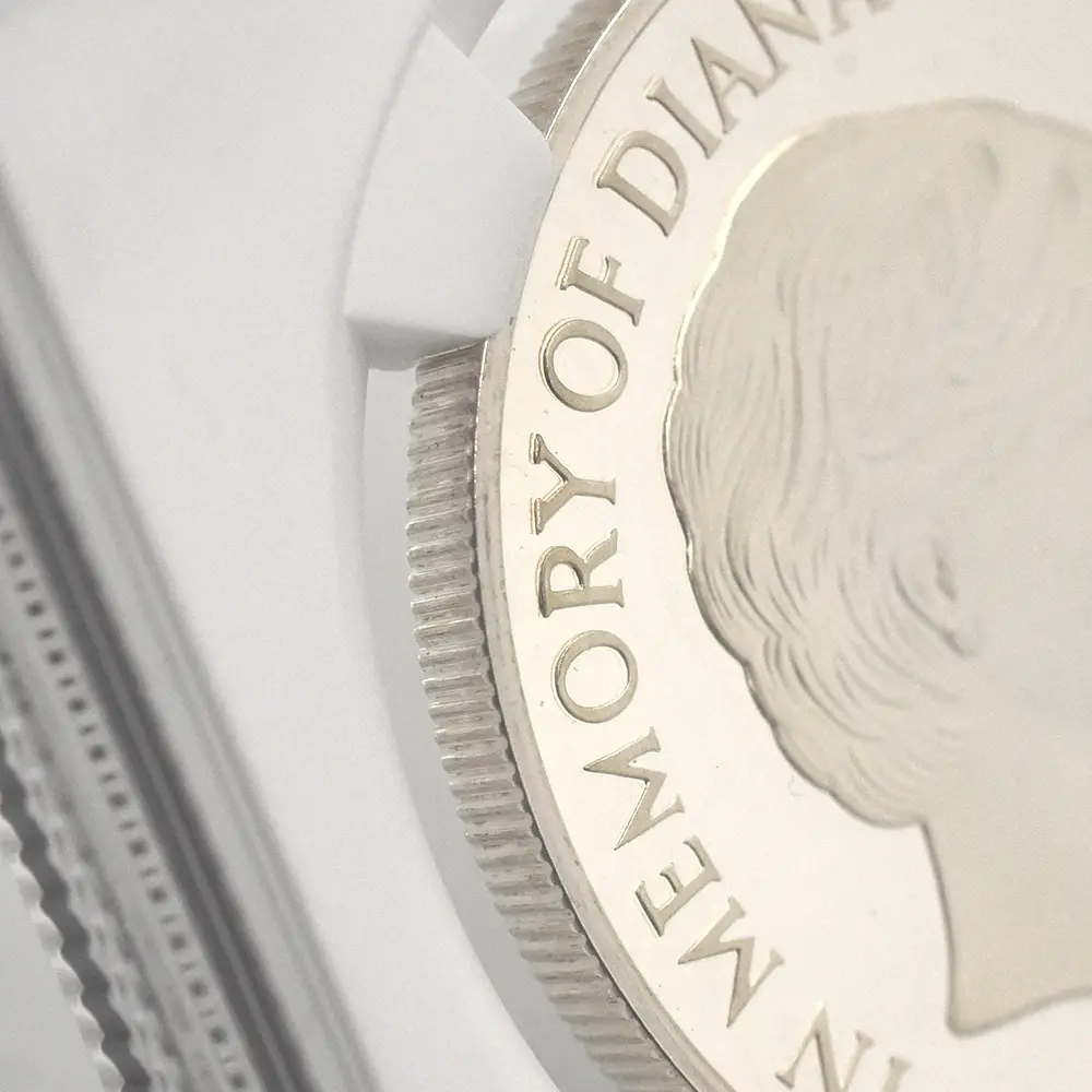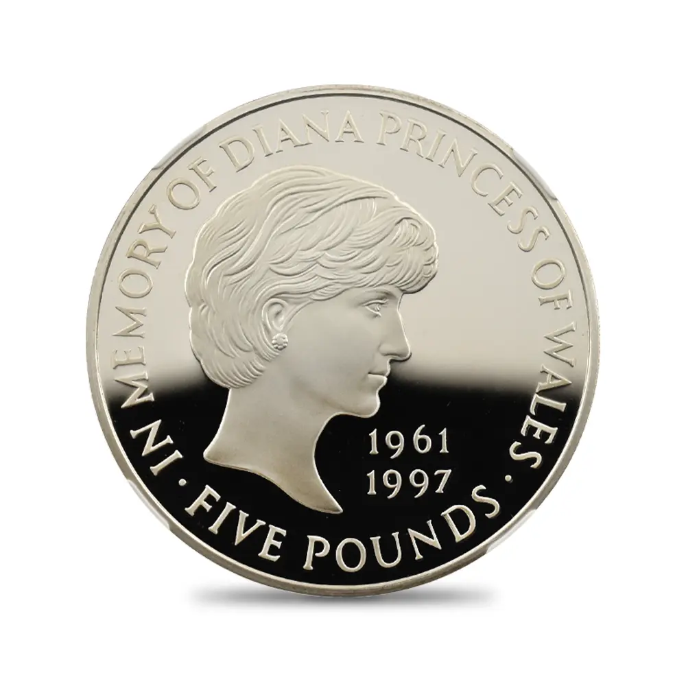 イギリス 1999 エリザベス2世 ダイアナ妃追悼記念 5ポンド銀貨 NGC PF69UC 箱付き