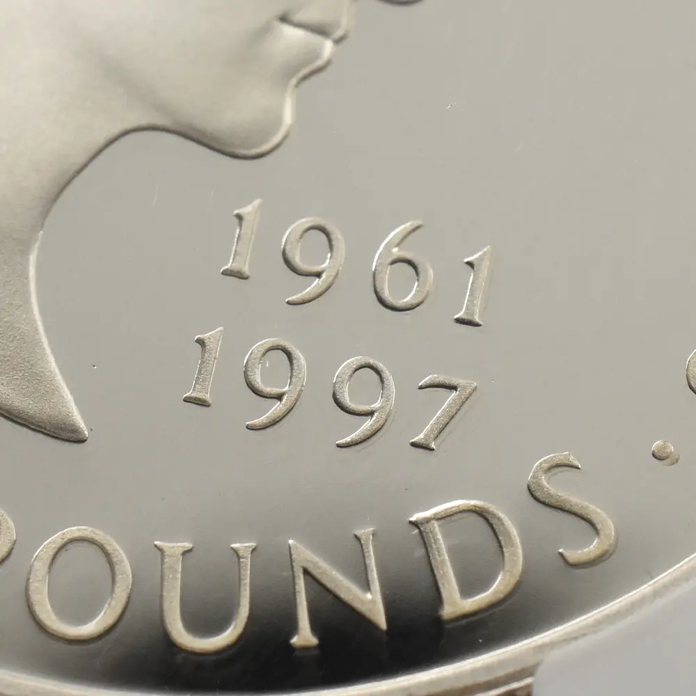 1999年、元妃の死から2年の時を経てリリースされたこの5ポンド銀貨は、生前のダイアナ元妃の面影を刻む英国内で発行された唯一の記念銀貨です。頭上には皇太子妃の高位を示すティアラも装飾品も見当たりません。そこにはただうつむき加減に頭を下げ、美しくも謙虚な自由人としてのダイアナ元妃の姿のみが忠実に再現されています。元妃ほど世界中で愛された人物は歴史上そう多くはないはずですが、今は亡き元妃の存在が一層生命力を帯び、元妃が掲げた利他愛が今でもこの世に生き残り、元妃の伝説と共にますますその真価を発揮しているということをこの銀貨は力強く物語っています。他者に対する限りない愛情のみが永遠であるということを、コインの中の元妃の肖像はただただ無言で語りかけてくるようです。