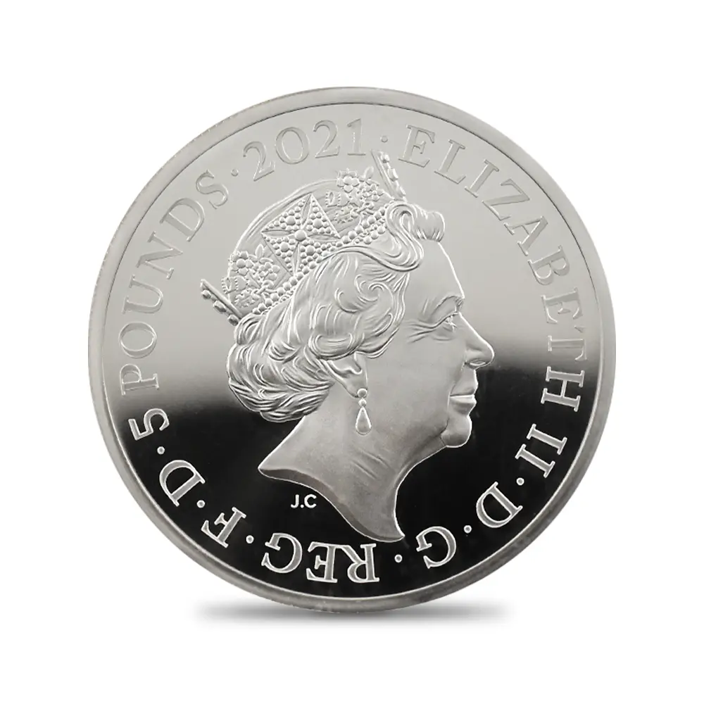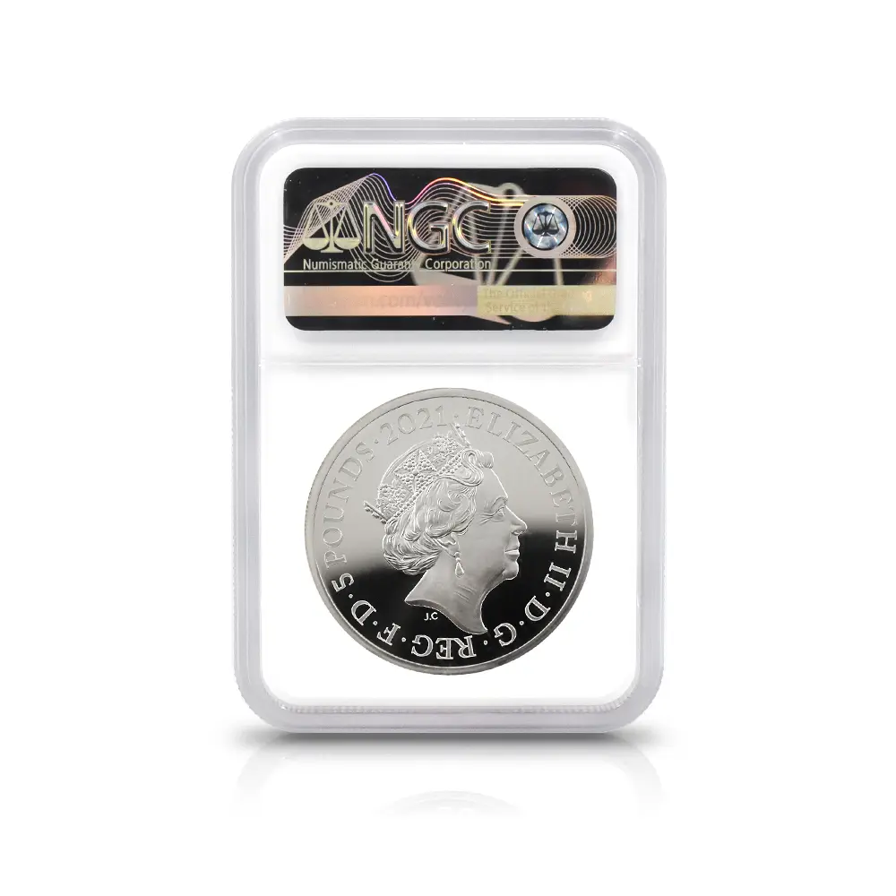 イギリス 2021 エリザベス2世 ゴチッククラウン・ポートレート 5ポンド2オンス銀貨 ファーストリリース NGC PF70UC