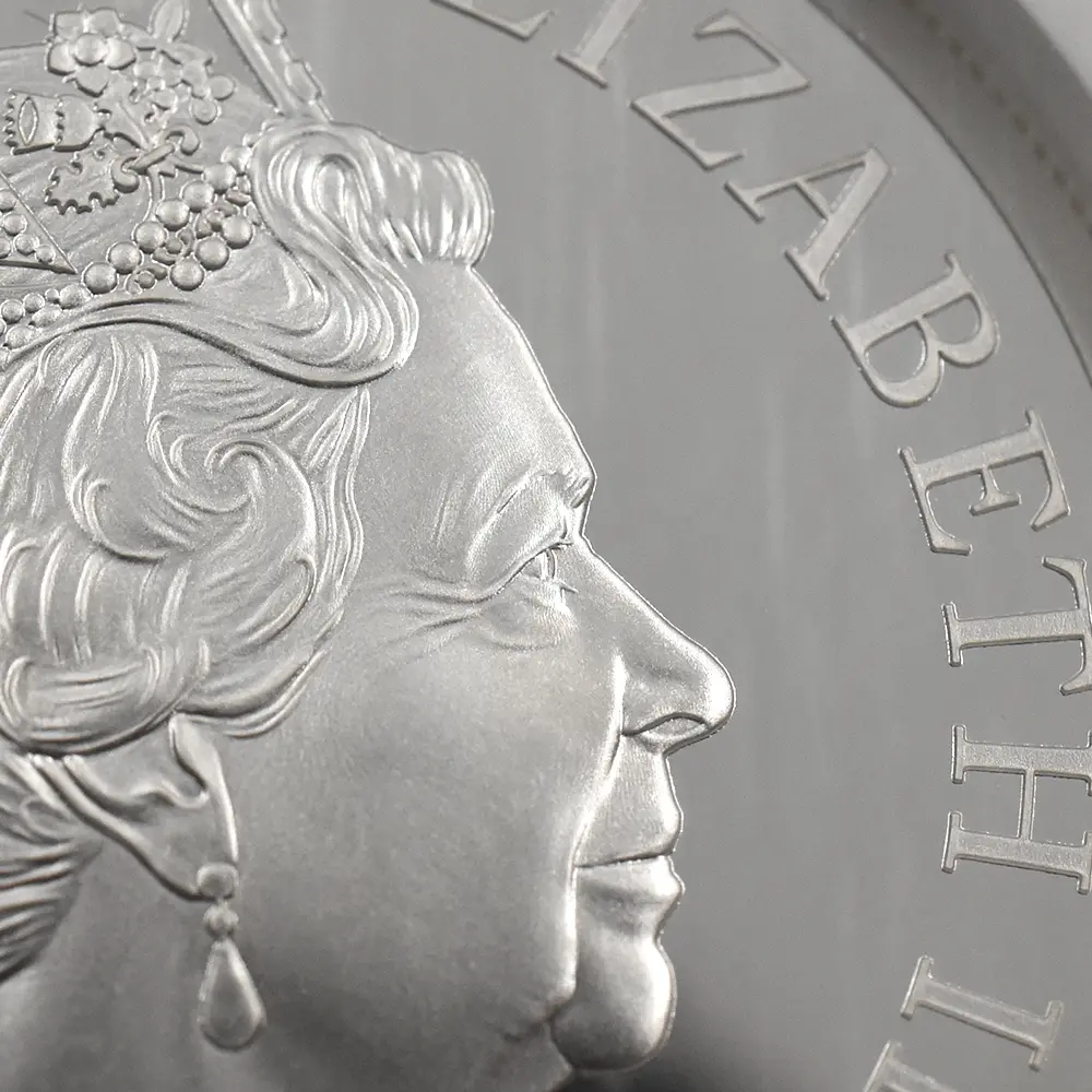 この度の「ポートレート」にまつわる興味の対象として、表面に現英国君主エリザベス女王の有名な「第5肖像」、そして裏面に伝説的なヴィクトリア女王の「ポートレート」と、歴史上に名を残す2人の女王の肖像を一枚のコインの表裏に刻んでいることが挙げられます。現代的に洗練された気品を感じさせるエリザベス女王の横顔は、荘厳な趣を湛えるヴィクトリア女王の絵姿と対を成すに相応しいものであり、この優れたモダンコインの主要なテーマとなっています。そして特筆すべきは、新たに生み出されたコインとしての奇跡的なレベルでの完成度の高さです。