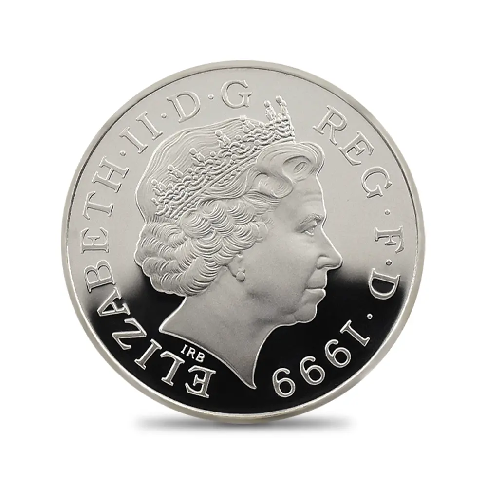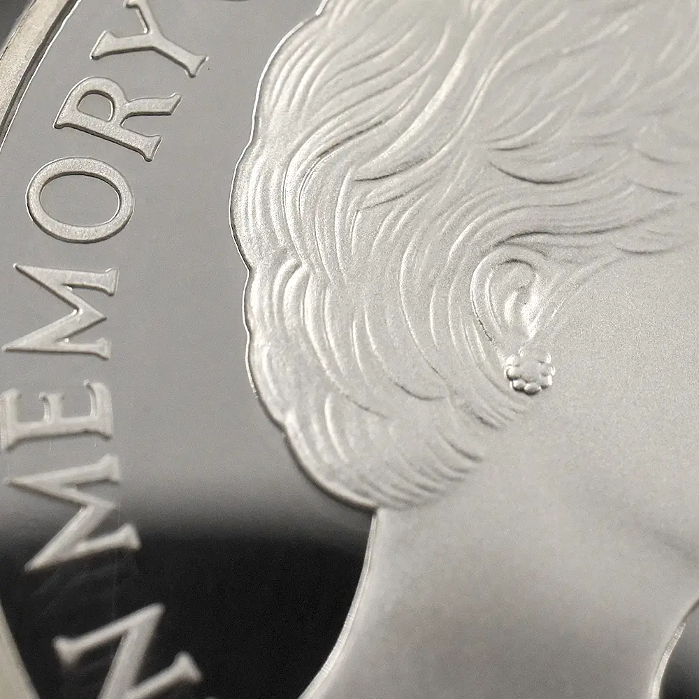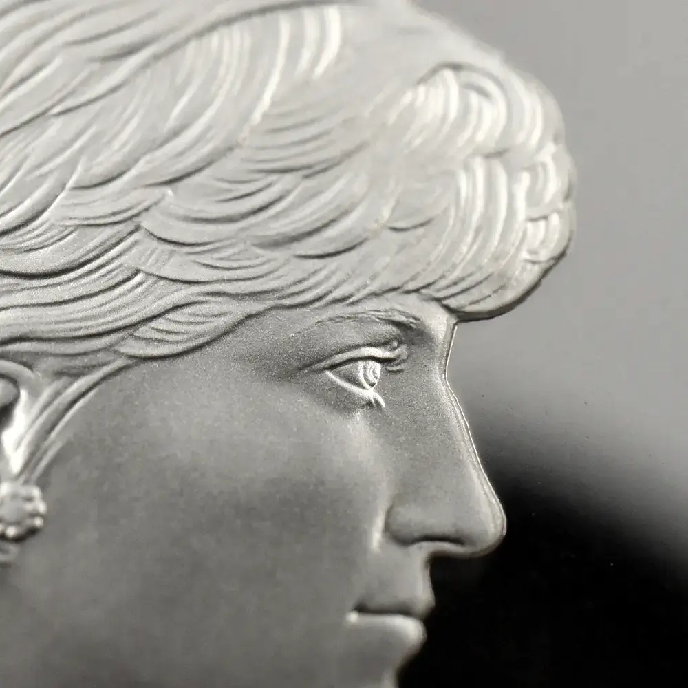 1999年、元妃の死から2年の時を経てリリースされたこの5ポンド銀貨は、生前のダイアナ元妃の面影を刻む英国内で発行された唯一の記念銀貨です。頭上には皇太子妃の高位を示すティアラも装飾品も見当たりません。そこにはただうつむき加減に頭を下げ、美しくも謙虚な自由人としてのダイアナ元妃の姿のみが忠実に再現されています。元妃ほど世界中で愛された人物は歴史上そう多くはないはずですが、今は亡き元妃の存在が一層生命力を帯び、元妃が掲げた利他愛が今でもこの世に生き残り、元妃の伝説と共にますますその真価を発揮しているということをこの銀貨は力強く物語っています。他者に対する限りない愛情のみが永遠であるということを、コインの中の元妃の肖像はただただ無言で語りかけてくるようです。