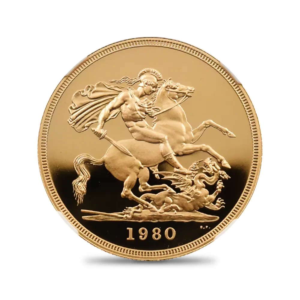 1980 エリザベス2世 ヤングエリザベス 聖ジョージ竜退治 5ソブリン金貨 NGC PF70UC