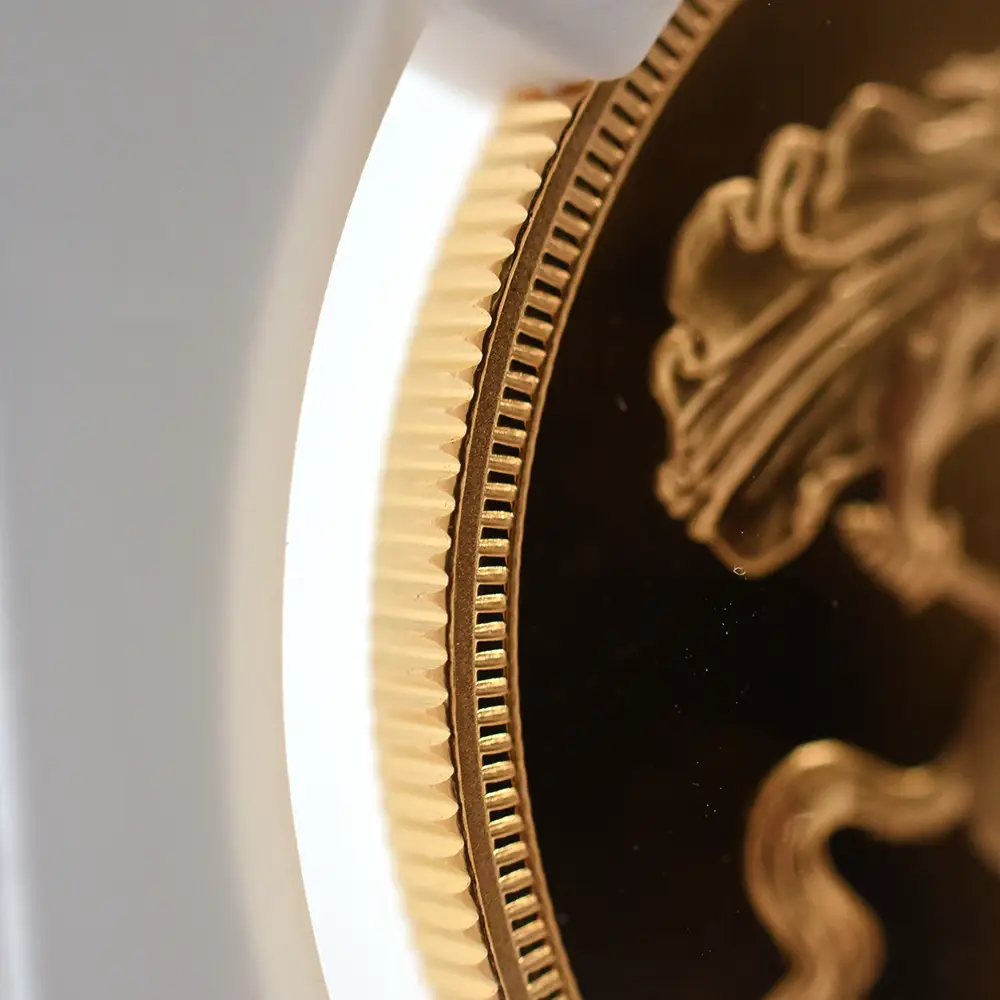 歴代英国君主の威厳のある肖像を掲げ、過去500年以上にわたって英国ロイヤルミントのフラッグシップ・コインとして発行され続け、各王朝時代を代表するコインとして別格扱いされてきた長大なる歴史を誇るソブリン貨。その起源を紐解きますと15世紀のヘンリー7世の治世にさかのぼります。1489年に初登場したソブリン金貨は、それまで流通していた天使を描いたエンジェル金貨に対して王座に座る国王を描いていたためソブリン(君主)と名付けられ、20シリングと等価とされたのが始まりです。大型の見栄えのするコインとして一世を風靡したソブリン貨はヘンリー8世の時代へと受け継がれ、エリザベス1世の時代にはそれまでの王座の君主のデザインではなく国王の横顔が初めて刻まれるようになります。この劇的な変更はその後の英国コイン表面のスタンダードとなり、1603年のジェームズ1世の即位の1年後に製造が打ち切られ新しいユナイト金貨に置き換えられた後も、国王の横顔をコイン表面に描く慣例のみが英国貨幣史400年の変遷とともに存続します。1604年に一旦幕を下ろしたソブリン金貨の輝かしい歴史ですが、1816年に新たに制定された貨幣法に基づく金本位制の採用に伴い本位金貨として発行された時に再び歴史上に姿を現しました。1817年から鋳造が開始されたこの新しい金貨もまたソブリンと名付けられ、過去のソブリン貨とは全く別の法定金貨として再出発することになります。近世英国貨幣史に突如として帰り咲いたソブリン貨は1スターリング・ポンドと対価とされ、英国ロイヤルミントと世界中に存在する同機関の姉妹造幣局によってその後も発行され続けます。英国外で最初にソブリン貨が発行された場所はオーストラリアのシドニー造幣局で、1872年にはメルボルン造幣局がそれに続きます。さらに1899年には同国のパース造幣局、そして1908年にはカナダ造幣局、1918年にはインドのボンベイ造幣局、そして1923年の南アフリカ造幣局と続き、本国で誕生したソブリン貨の伝統は英国の海外領土各国においても脈々と受け継がれていくことになります。創立以来1100年以上を経たロイヤルミントの伝統と匠の技を今に伝えるソブリン貨は、その名と同じく英国君主の栄光の在位を記念するアニバーサリー・コインとして発行される機会が多く、英国コインを取り巻く世界を魅了し続けています。