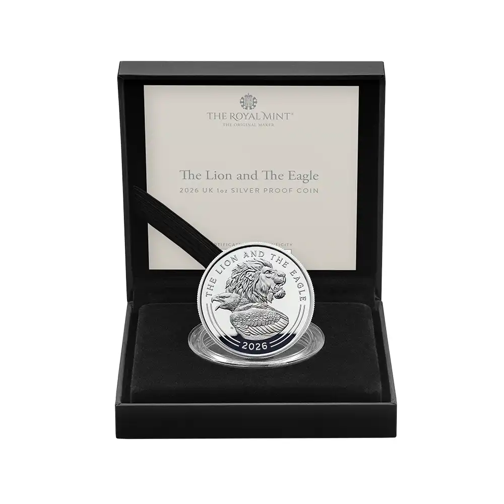 イギリス 2026 チャールズ3世 ライオン&イーグル 2ポンド1オンスプルーフ銀貨 未鑑定 箱付き【ご予約承り品】