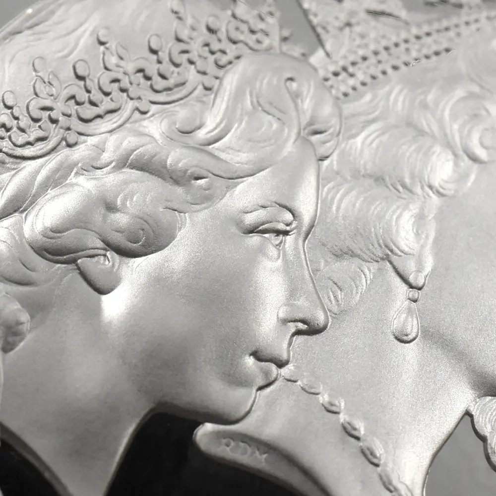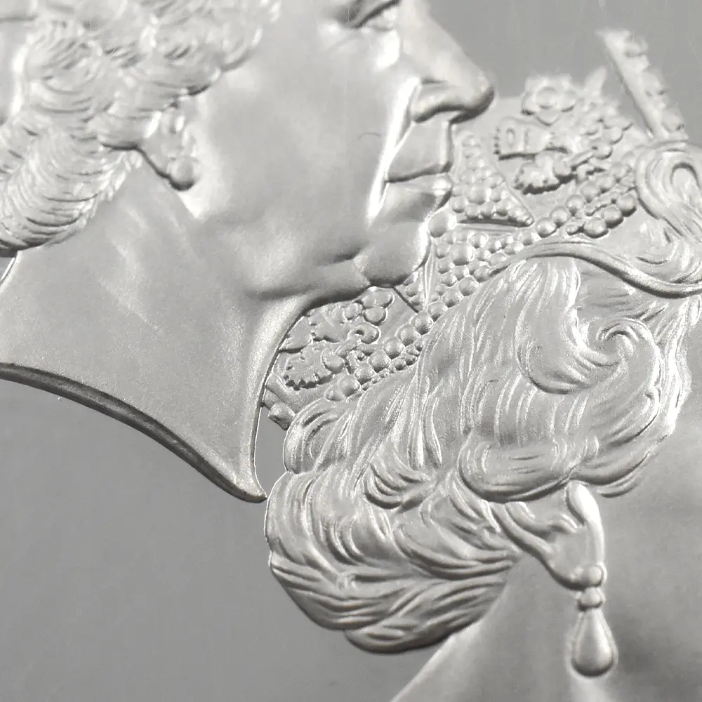 この空前の瞬間をコインによって表現し、成功に導いた英国ロイヤルミントの功績は計り知れません。殆どの予想を覆して生み出された新しいコインデザインのコンセプトは、古典的かつ歴史的な重厚感が漂うもので、モダンコインの傑作中の傑作として現代英国貨幣界の新たな一ページとなりました。