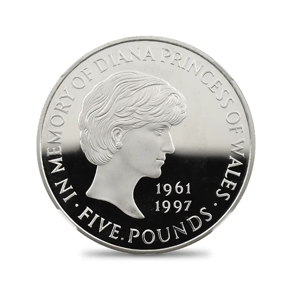 イギリス 1999 エリザベス2世 ダイアナ妃追悼記念 5ポンド銀貨 NGC PF69UC