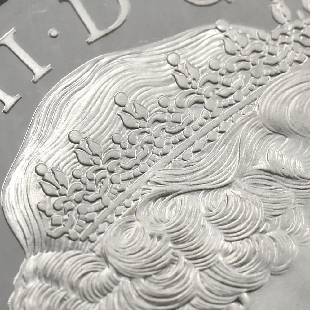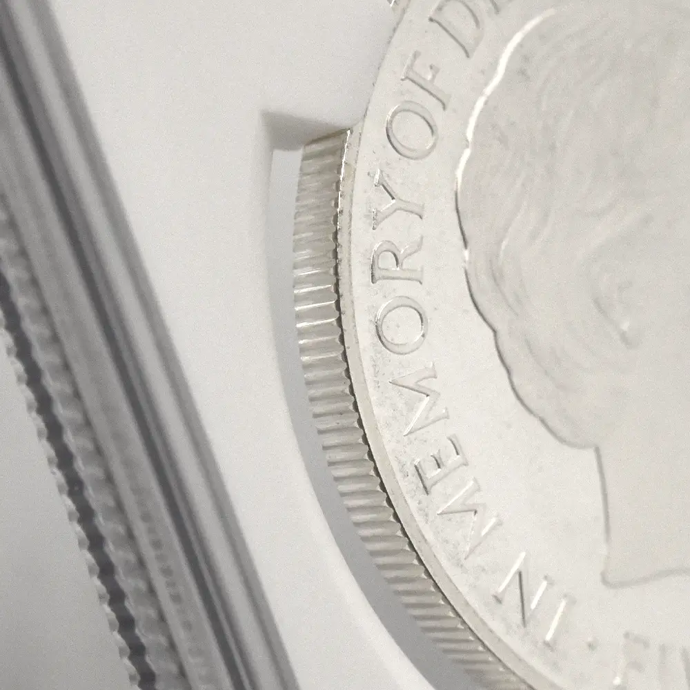 1999年、元妃の死から2年の時を経てリリースされたこの5ポンド銀貨は、生前のダイアナ元妃の面影を刻む英国内で発行された唯一の記念銀貨です。頭上には皇太子妃の高位を示すティアラも装飾品も見当たりません。そこにはただうつむき加減に頭を下げ、美しくも謙虚な自由人としてのダイアナ元妃の姿のみが忠実に再現されています。元妃ほど世界中で愛された人物は歴史上そう多くはないはずですが、今は亡き元妃の存在が一層生命力を帯び、元妃が掲げた利他愛が今でもこの世に生き残り、元妃の伝説と共にますますその真価を発揮しているということをこの銀貨は力強く物語っています。他者に対する限りない愛情のみが永遠であるということを、コインの中の元妃の肖像はただただ無言で語りかけてくるようです。