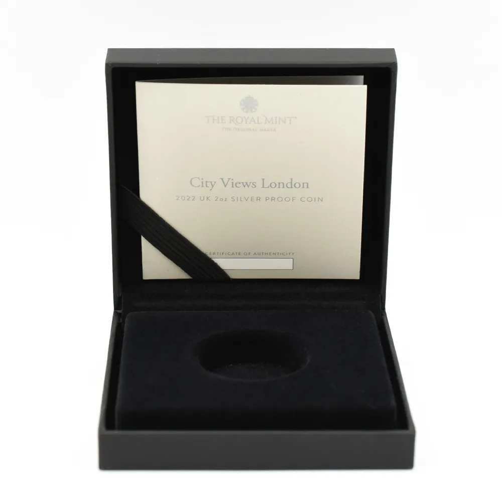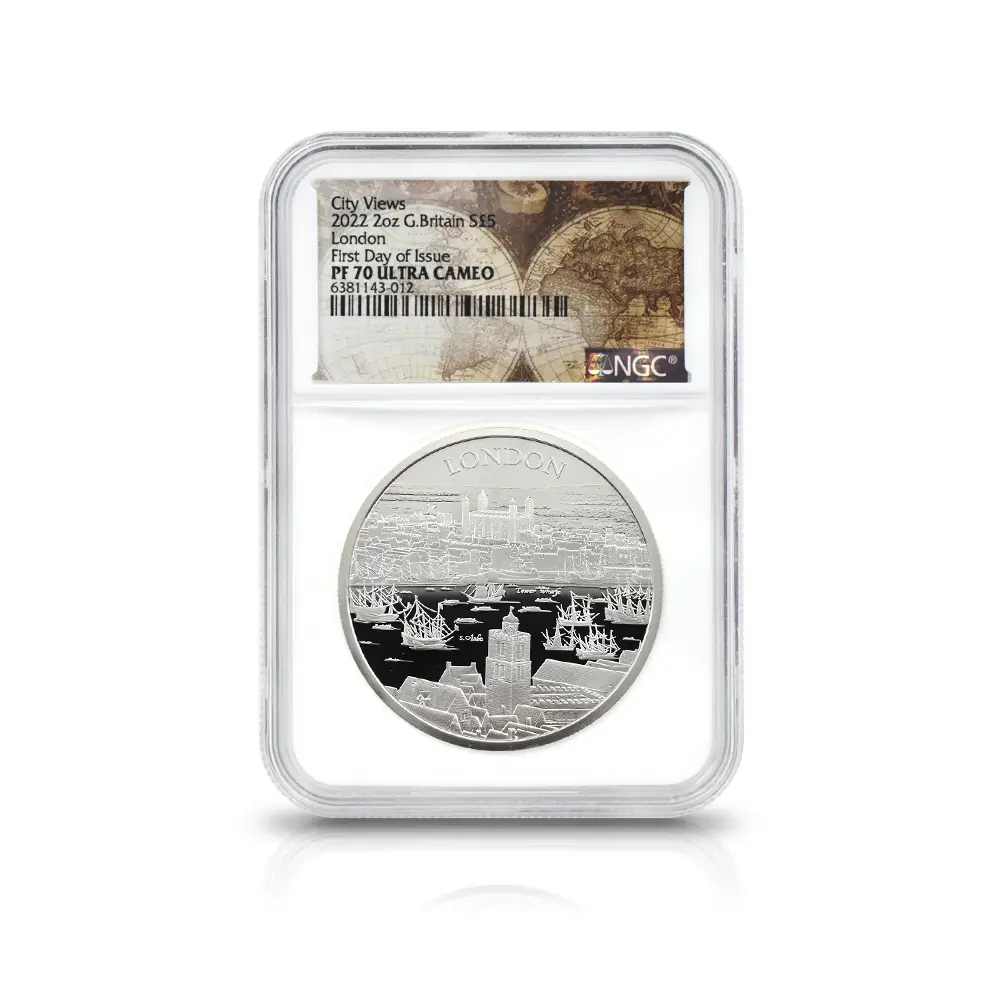 イギリス 2022 エリザベス2世 都市景観シリーズ第1弾 ロンドン 5ポンド2オンス銀貨 発行即日鑑定品 NGC PF70UC 箱付き