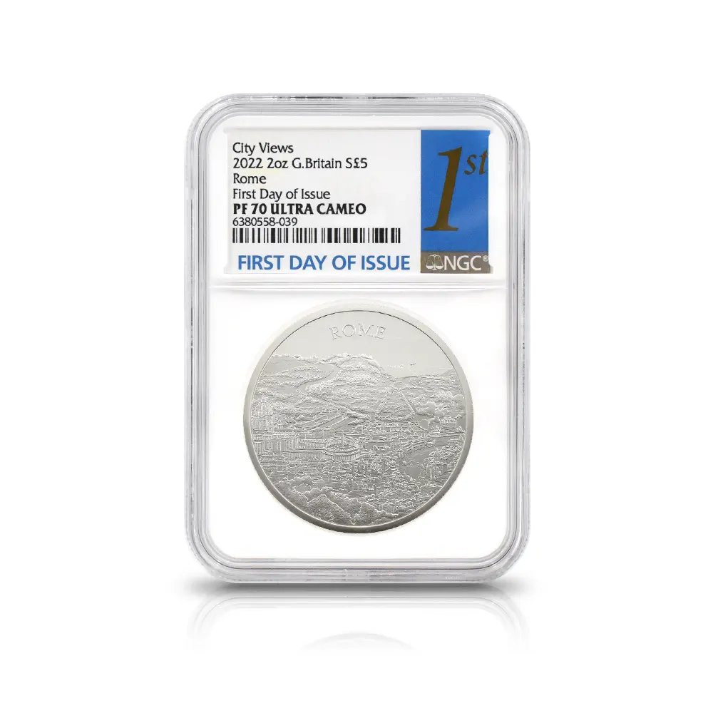 イギリス 2022 エリザベス2世 都市景観シリーズ第2弾 ローマ 5ポンド2オンス銀貨 発行即日鑑定品 NGC PF70UC 箱付き