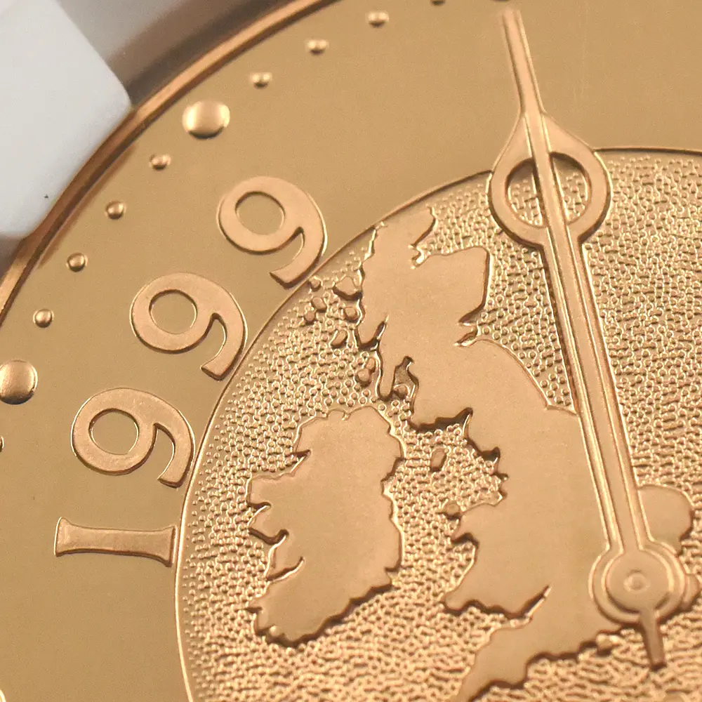 グレード数 69 最大発行数 2500 重量 約39.94 g 直径 約38.61 mm 品位 約91.7%Au(K22) 表面 エリザベス2世 第4肖像 表面 12時を指しているグリニッジから伸びる時計 発送元 日本国内から発送 納期 お問い合わせください 世紀の瞬間を捉えた秀逸なデザインが魅力的なモダンコインの異色作