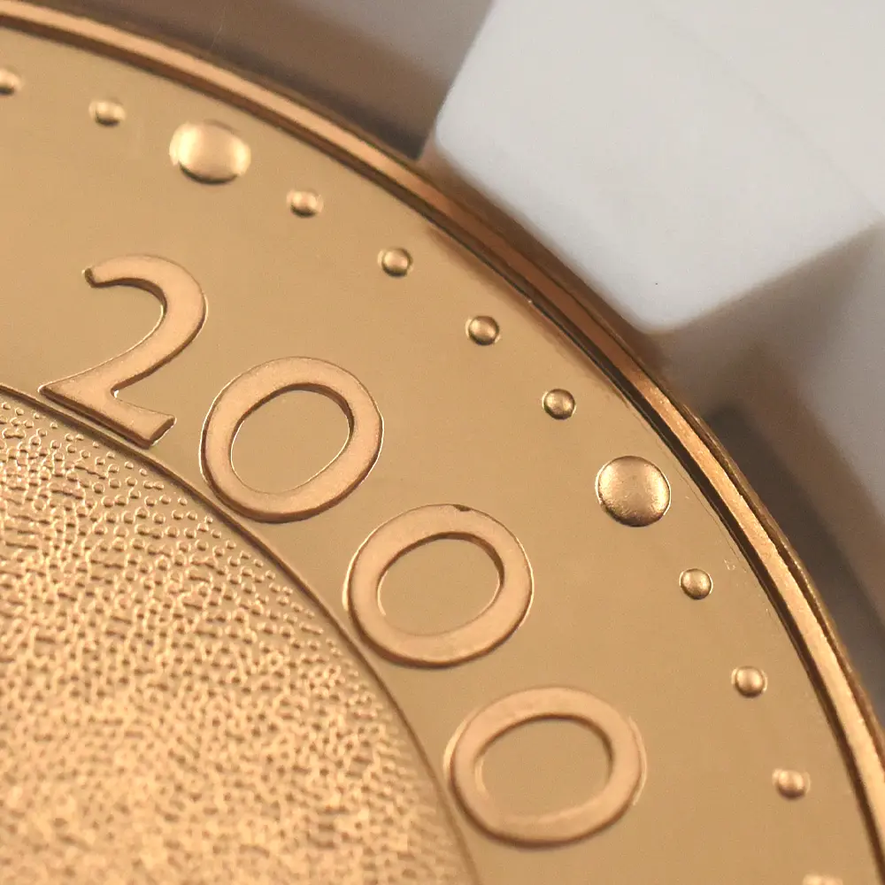 一千年の歴史を終えて新たな世紀へと前進するイギリスの力強さを意匠化した名コインデザイン