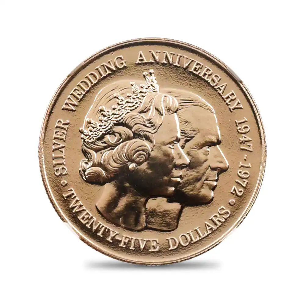 ケイマン諸島 1972 エリザベス2世 御成婚25周年記念 25ドル金貨 NGC MS69DPL