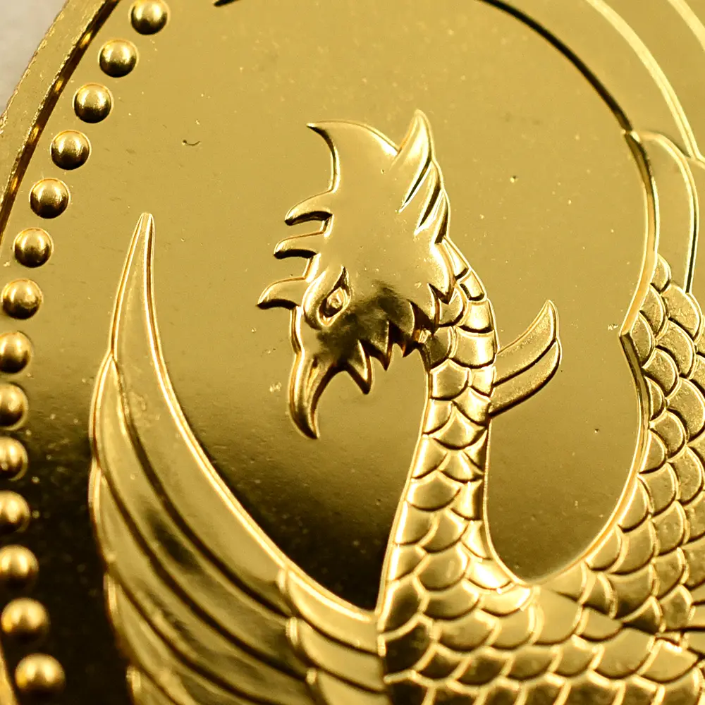 品番 6890 重量 30.00 g 直径 33.00 mm 品位 約99.9%Au(K24) 表面 鳳凰と瑞雲 表面 菊の御紋と桐と唐草 発送元 日本国内から発送 納期 お問い合わせください