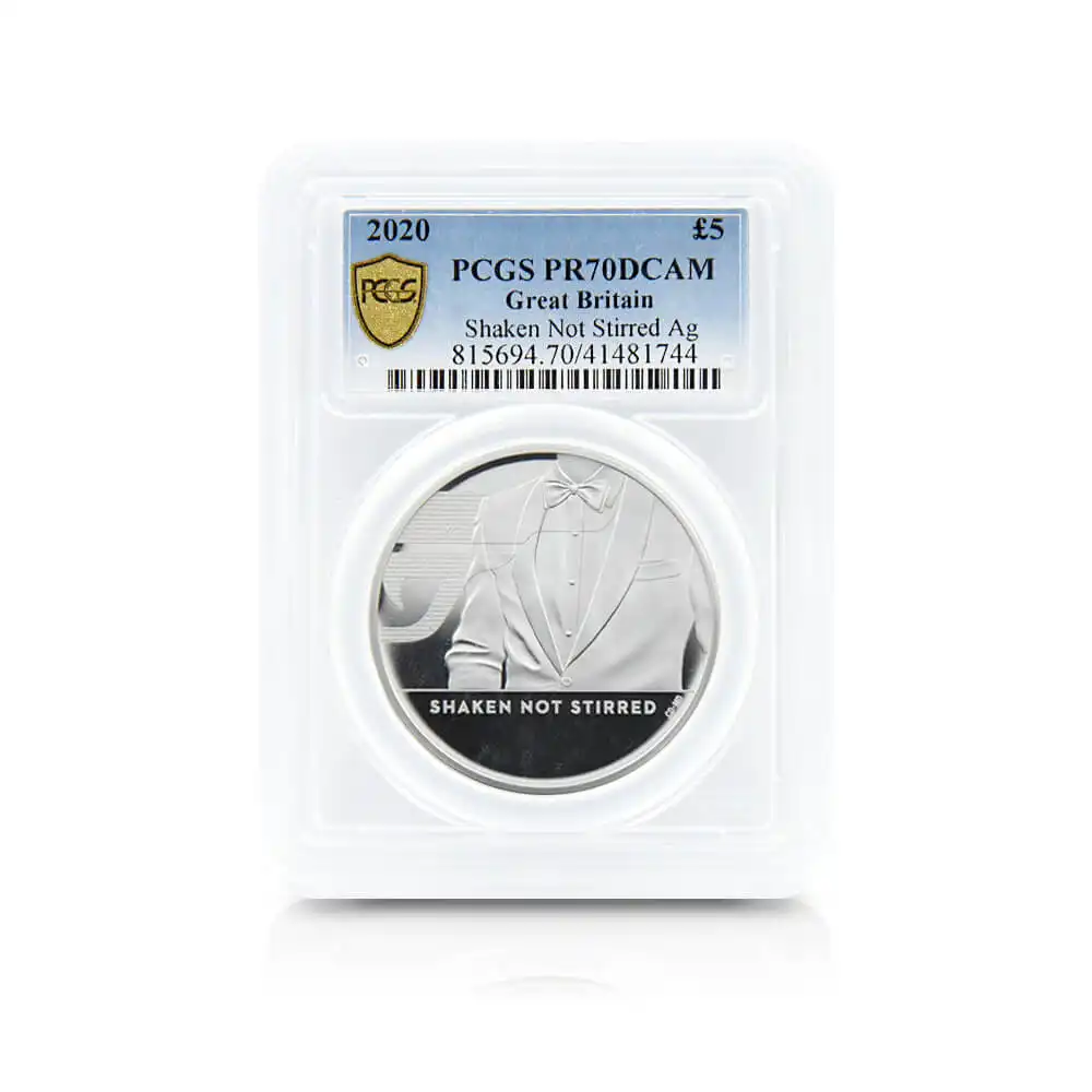 HOME > 商品一覧 > 2020 エリザベス2世 007 ジェームズ・ボンド 第3貨 5ポンド2オンス銀貨 PCGS PR70DC 箱付き