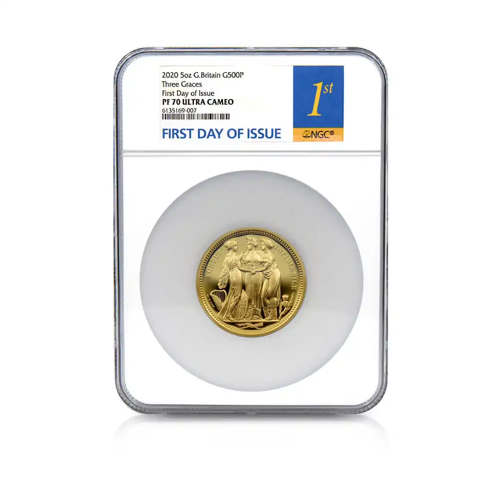 2020 エリザベス2世 スリーグレーセス 500ポンド5オンス金貨 ロイヤルミント発行 ファーストデイオブイシュー NGC PF70UC 箱付き