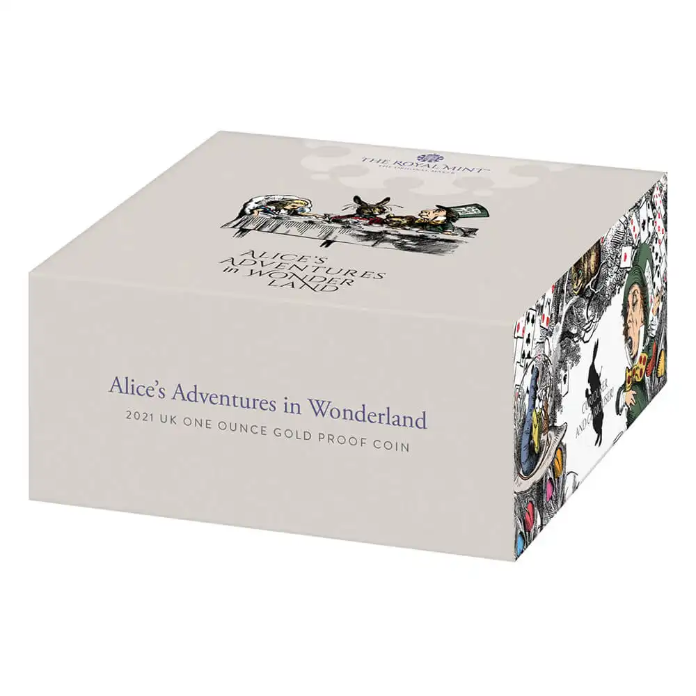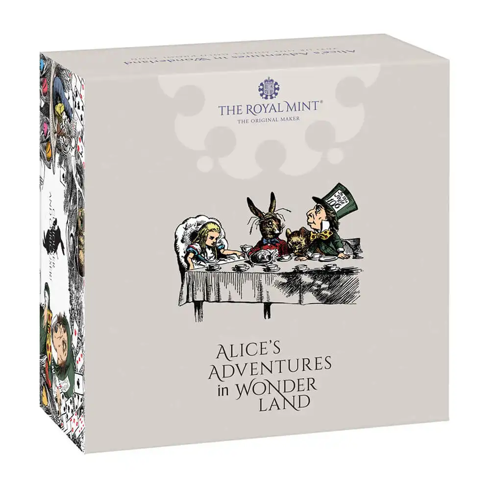 ヴィクトリア時代を代表する英国文学の傑作であるこの2編が発行されてから150年以上の時が経過しています。アリスの物語が英国コインの題材として取り上げられるのは今回が初めてですが、過去にそのような試みが全くなかったのが不思議なほどです。どちらのコインにも表面には名高い「エリザベス女王の第5肖像」が刻まれていますが、現英国君主の威厳漂うこれらのコインの発行によって、アリスの物語は21世紀の新たな伝説となり、再び脚光を浴びることになりました。英国児童文学の最高傑作であるこれらの物語を描く当コインセットは、著者キャロルの造語「Unbirthday=実際の誕生日以外の日に祝われるべきイベント」が表現する「日常に非日常を求める」大人たちのために贈られる厳選された記念品でもあります。