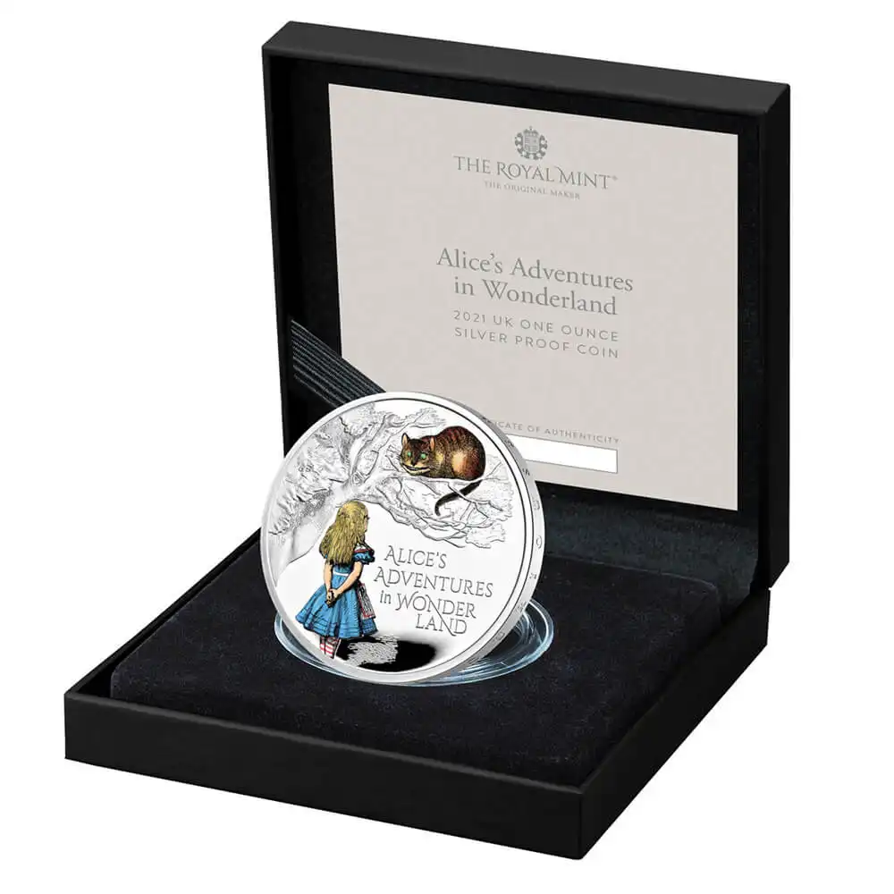 2021 エリザベス2世 アリスの冒険 2ポンド1オンスプルーフカラー銀貨 2枚セット ロイヤルミント発行 未鑑定 発行数3510セット 箱付き 【ご予約承り品】