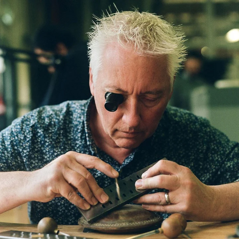ゴードン・サマーズは、The Royal Mintのチーフ彫刻師であり、886ジュエリーの革新と生産開発をリードしています。30年以上のデザインと金属加工の経験を持つ彼は、独創的なアイデアを実現し、古い技術とスキルを蘇らせることで、環境に優しい高品質なジュエリーを作り出しています。