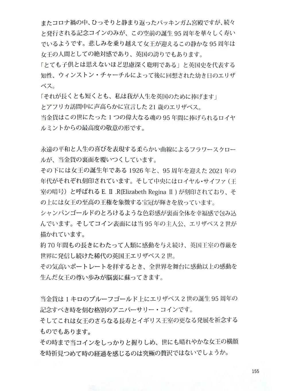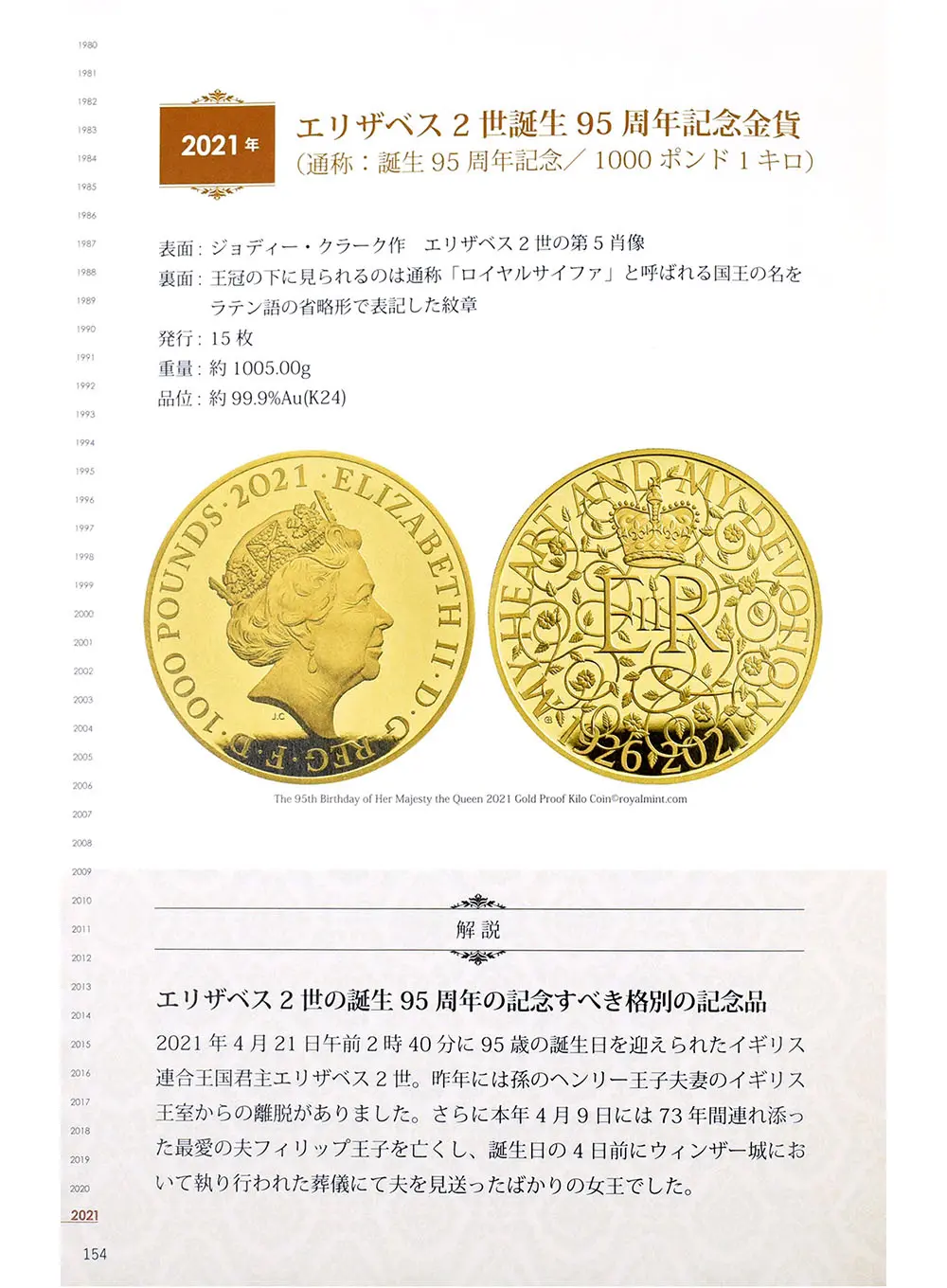 1952年のエリザベス2世の即位以降、約70年間にわたって過去の重要な出来事や人物に焦点を当て、英国貨幣史の近代化を実現してきた美しき記念コインの数々。本書は歴史的価値を秘めたモダンコインの傑作を写真付きで解説するコイン収集のための必読書です。資料的価値はもちろんのこと、記念コインの写真集としてもお楽しみいただける内容となっています。