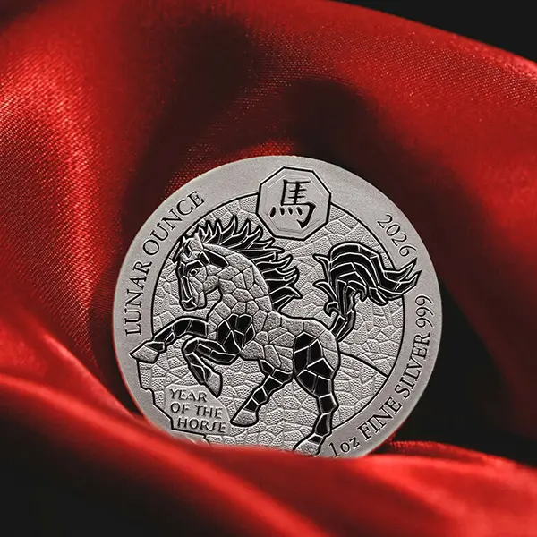 鏡面(プルーフライク)と艶消し(フロスト)のコントラストが、光を浴びるたびにキラキラと表情を変え、お祝いムードを一層盛り上げます。伝統的な干支コインの枠を超えた、モダンでスタイリッシュな縁起物です。