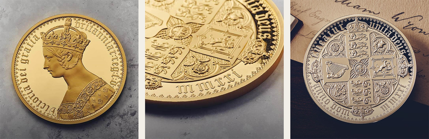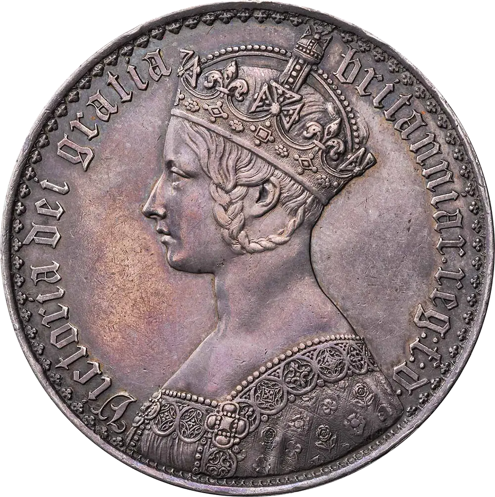 1847年に銀貨として約8000枚が発行されたことが記録に残っている「ゴチッククラウン」ですが、その全貌は未だ謎に包まれています。まず現在でも目にすることは殆どない金貨バージョンですが、実際の発行枚数は知る由もありません。
