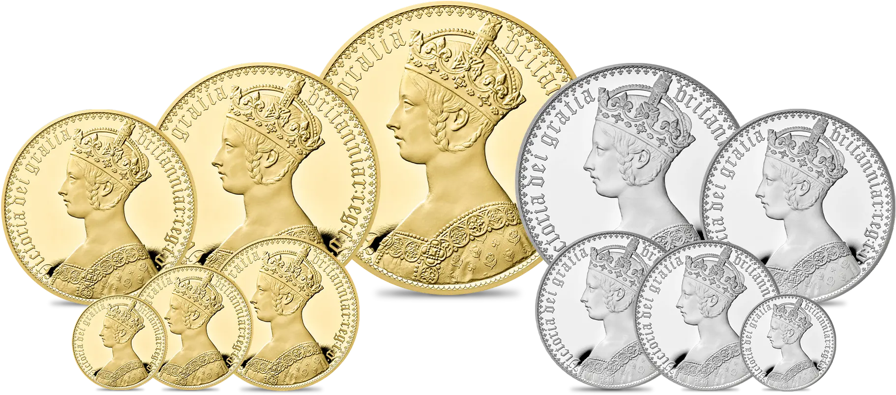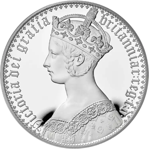 「ゴチッククラウン」は女王の即位から10年目の1847年、この幸運なロイヤル・カップルが愛に包まれた生活を送っていた最中に発行された英国貨幣の金字塔とされる傑作です。