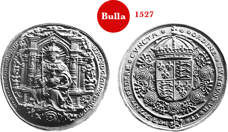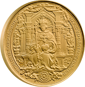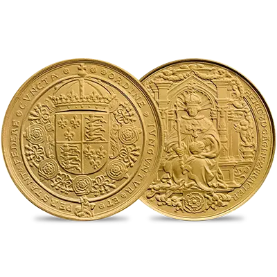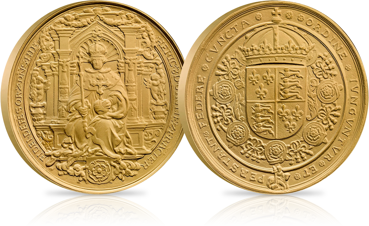 ノルマン征服以前から何世紀にもわたり現代に至るまで国璽(こくじ)は英国君主の意思を示す重要な印です。1527年ヘンリー8世はフランス王フランソワ1世と金布の地における会談で英仏平和条約として知られるアミアン条約を批准しました。当時両君主は自国の力を誇示するためお互い豪華で高価な贈り物を贈りあっており、条約の締結には蝋印ではなく金印を国璽として使用しました。