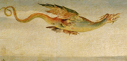 最後から2日目にはミサが開かれ、その終了後、人々は空を飛ぶ壮大なドラゴンを目にし驚嘆しました。それは2人の君主の友情を象徴するべく木製の輪で編まれた凧にテューダー朝のドラゴンとフランソワ1世のサンショウウオの紋章を融合させたものが描かれ、宙を舞っていたのです。