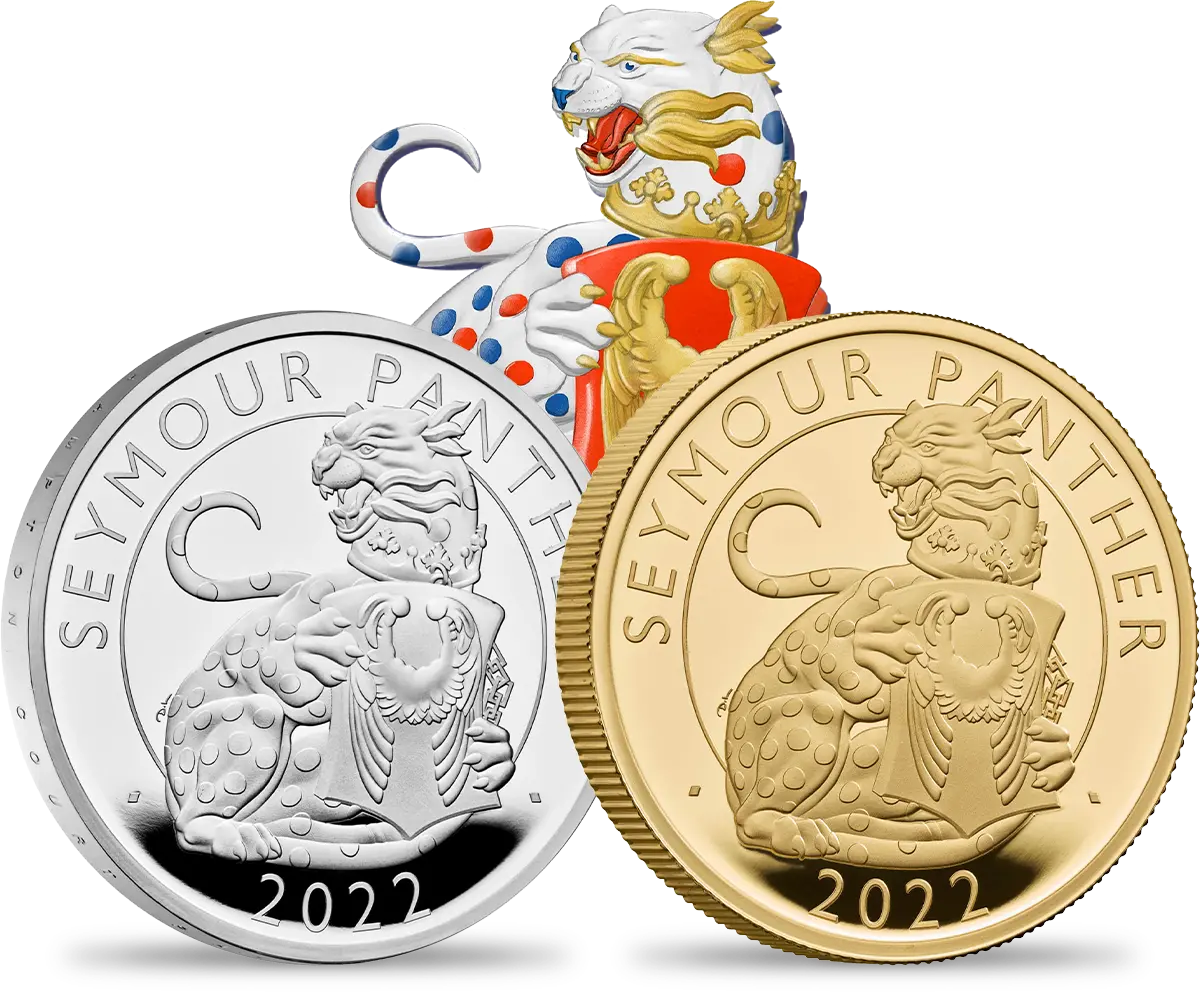 コイン裏面に描かれた力強い豹は、英国王位の象徴に相応しい偉容を表現しています。